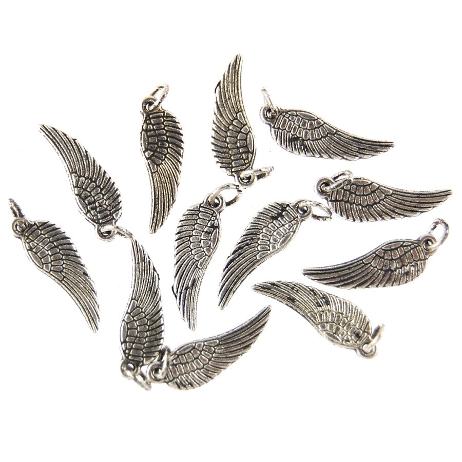 16mm Feathered Angel Wing Bead (Silver) (12 PCS)