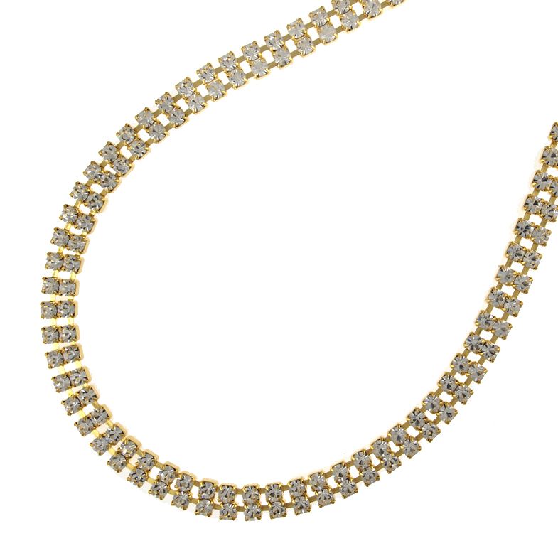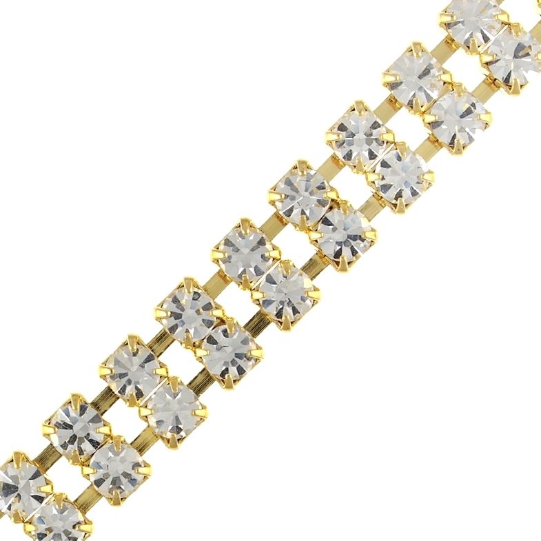 19ss(4.5mm) 2 Row Rhinestone Chain (Crystal/Gold) -Sold by the yard