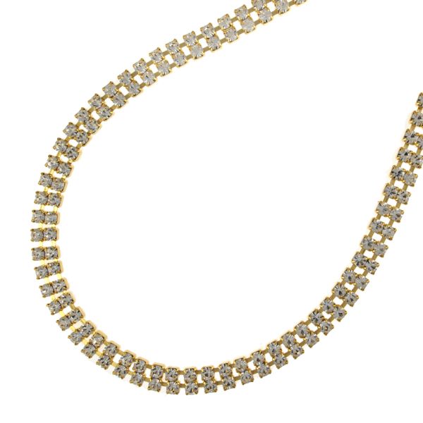2 Row Rhinestone Cup Chain, Crystal Stone and Gold Setting (Per Yard)