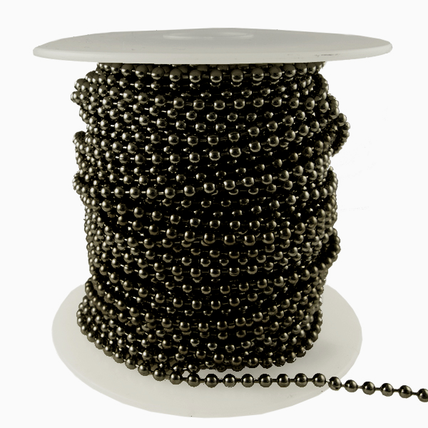 3.2mm Ball Chain, Steel, Black Gun Metal Color (By Spool, 100FT)
