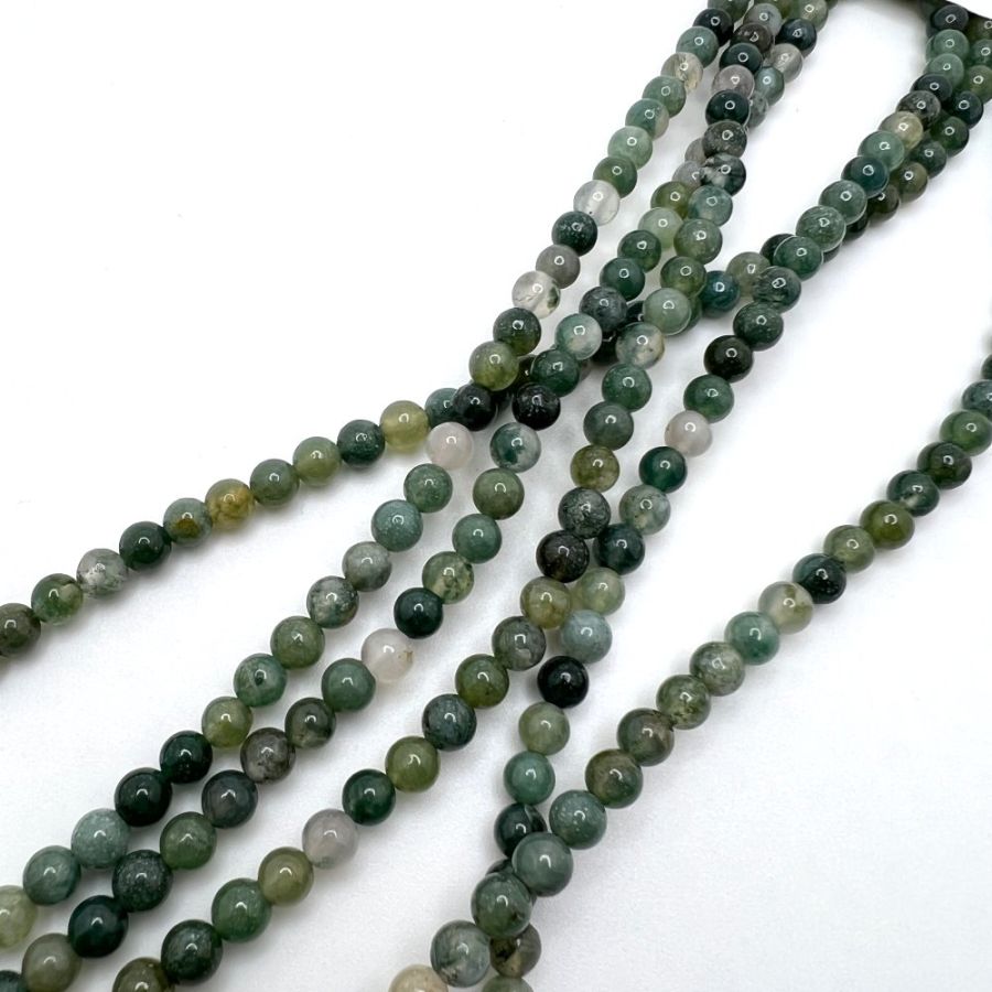 4mm Smooth Round, Moss Agate Beads (16" Strand)
