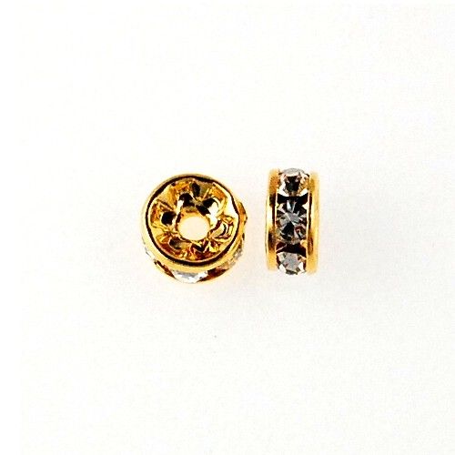 6MM Rhinestone Rondelles (BULK) Crystal/Gold (144 Pieces)