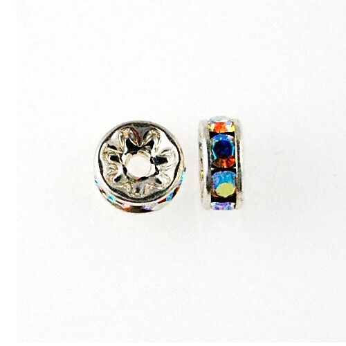 7MM Rhinestone Rondelles (BULK) Crystal-AB/Silver (144 Pieces)