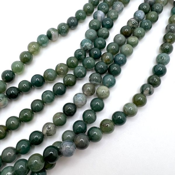 8mm Smooth Round, Moss Agate Beads (16" Strand)