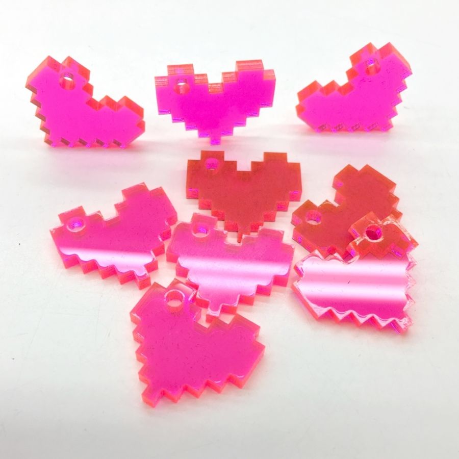Acrylic Charm, Florescent Red, Small Pixel Heart (4 Pieces)