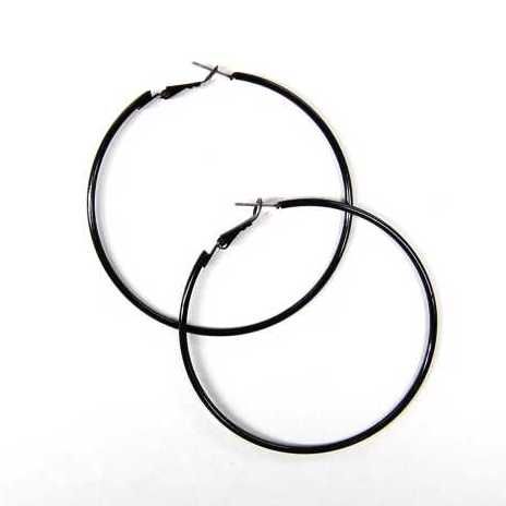 2.5" Designer Hoop Earrings -Black Finish -Approximately 2mm thickness -1 dozen pairs of earrings per package -Used for making Rondelle Hoop earrings, as seen on Basketball Wives. -Use with: "Acrylic Rhinestone Balls" or "Rondel