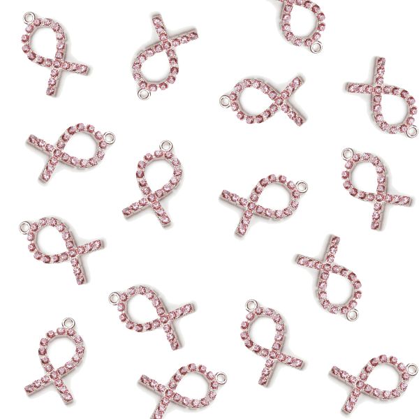 32.6 x 16.5mm Pink Rhinestone Breast Cancer Ribbon -Listing is for one charm