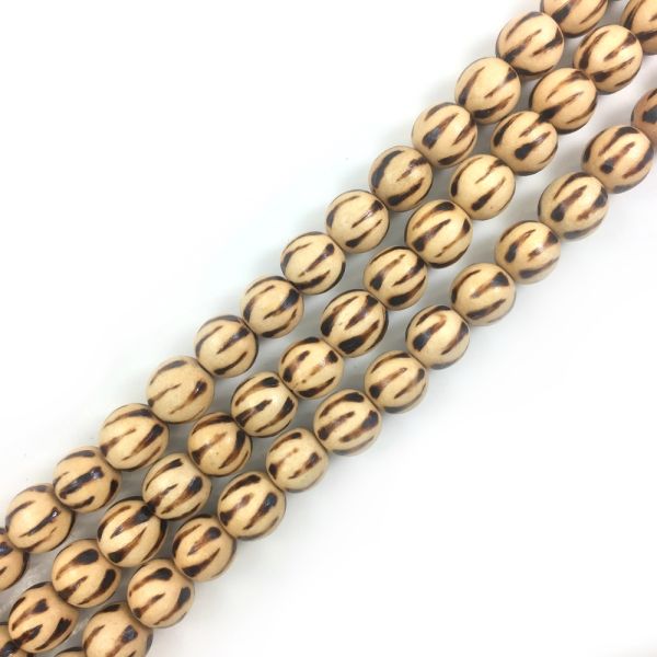Wood Beads, Burnt Flame Pattern, Round 9-11mm
